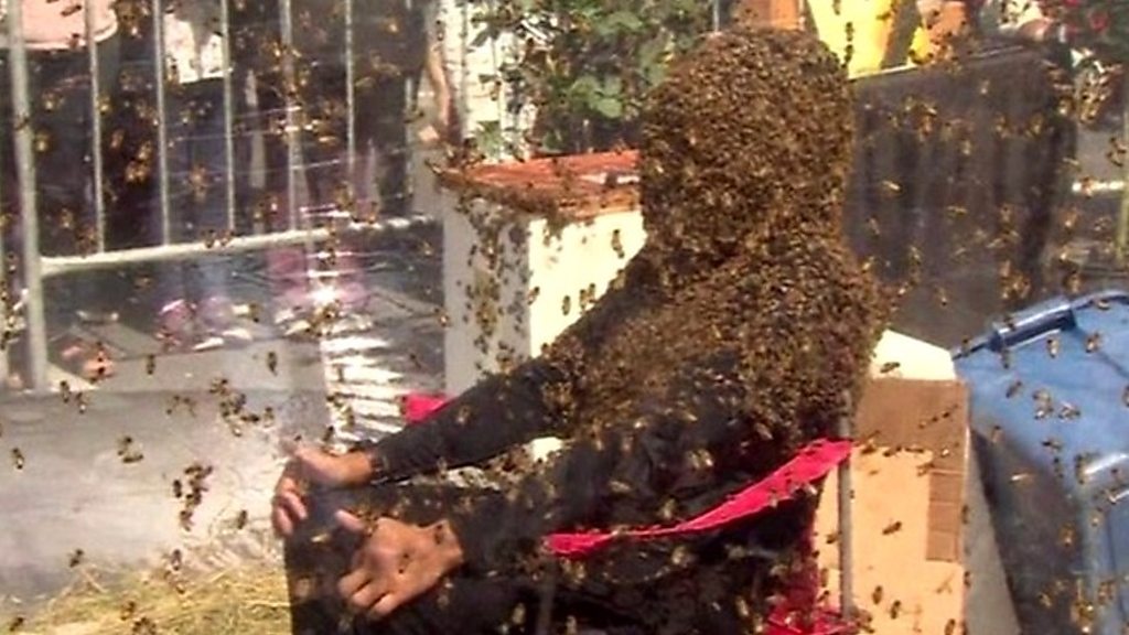 خوان كارلوس نوغوز أورتيز يسجل رقما قياسيا جديدا في تحدي "لحية النحل" بمدينة تورونتو الكندية، بعد أن جلس لمدة 61 دقيقة ووجهه مغطى بطبقة من النحل. هذ المحتوى " تسجيل رقم قياسي جديد في تحدي "لحية النحل" " نشر عبر September 01, 2017 at 08:22PM ونحن نخلي مسؤليتنا عن المحتوى