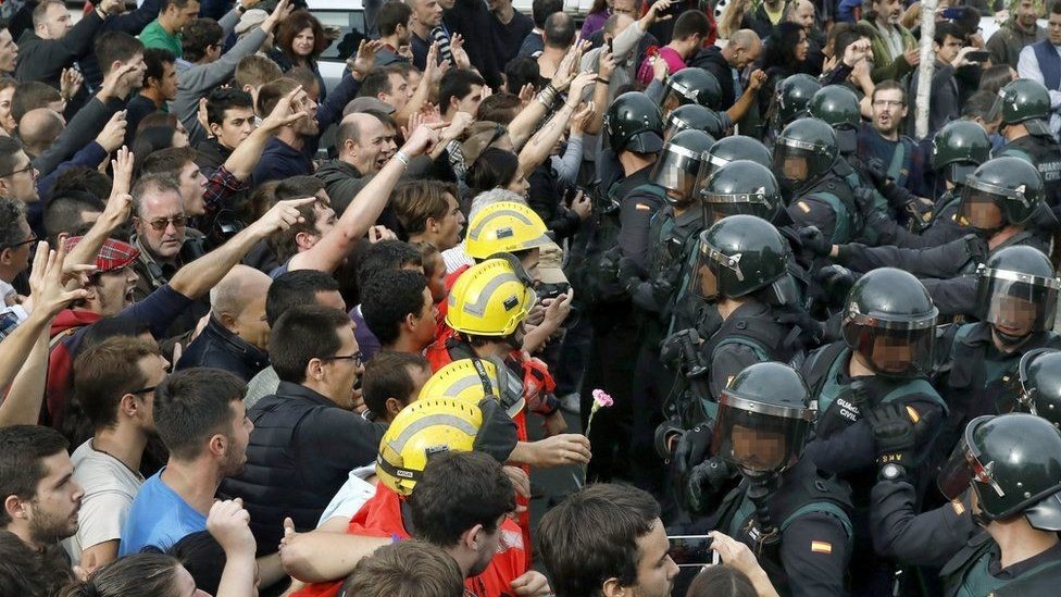 أعمال عنف وقعت في إقليم كاتالونيا لدى محاولات الشرطة الإسبانية منع إجراء استفتاء الانفصال الذي قضت المحكمة الدستورية في البلاد ببطلانه. وتحتوي بعض الصور على مشاهد عنيفة. هذ المحتوى " بالصور: استفتاء كاتالونيا " نشر عبر October 02, 2017 at 02:12AM ونحن نخلي مسؤليتنا عن المحتوى
